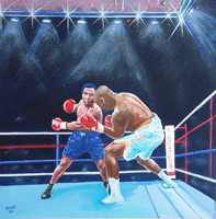 Nicola Giorgetti affida al dinanismo della linea la «costruzione» delle opere esposte, in una sorta di rivisitazione del gesto immediato, perentorio, intenso del pugile Tyson ripreso in azione sul ring. Di tela in tela, si scoprono, invece, i ciclisti che percorrono la pista di un velodromo, lo scatto bruciante e vincente di Pietro Mennea, «La freccia del Sud», e un’auto di F1 che corre velocissima sul circuito.